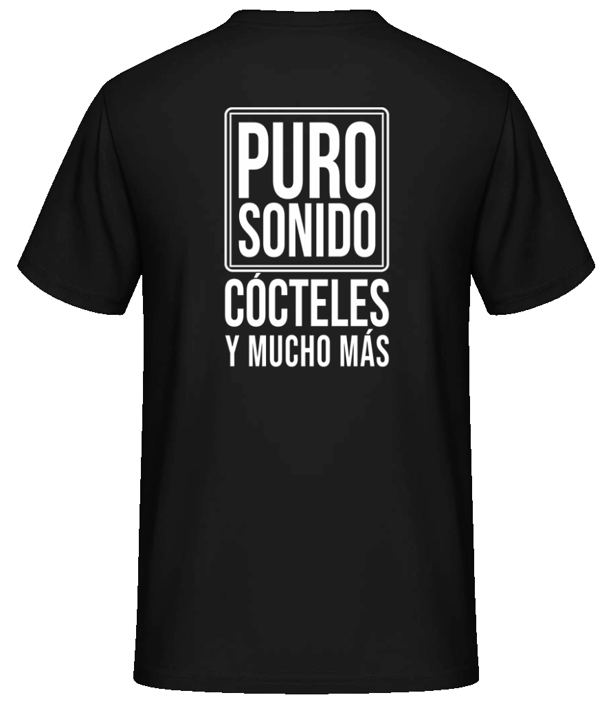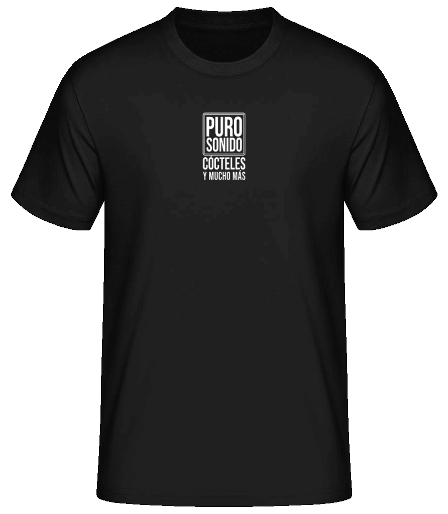 Empezamos con una primera colección de camisetas personalizables, para hombre y mujer, en blanco o negro, con el logo PuroSonido Cócteles y Mucho Más.